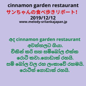 කෑම වේලක රස විදිමට CINNAMON GARDEN අවන්හල වෙතින්
